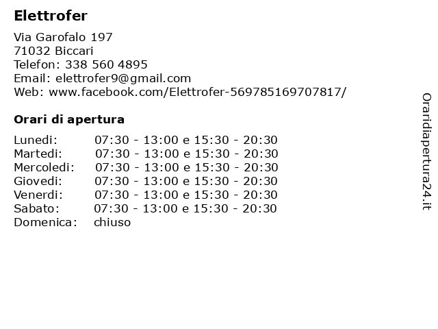 | Venerdi | 07:30-13:00 e 15:30-20:30 |