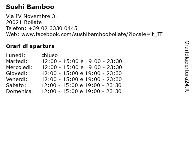 | Sabato | 12:00-15:00 e 19:00-23:30 |