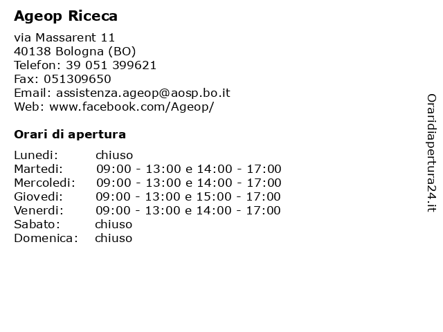 | Martedi | 09:00-13:00 e 14:00-17:00 |