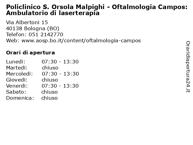 Tag di ricerca per Policlinico S. Orsola Malpighi - Oftalmologia Campos: Ambulatorio di laserterapia:di, s., sanità, assistenza, ambulatorio, malpighi, orsola, policlinico, oftalmologia, campos, laserterapia, cure mediche, servizi ai cittadini |