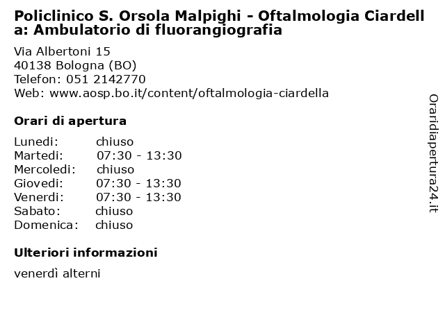 Tag di ricerca per Policlinico S. Orsola Malpighi - Oftalmologia Ciardella: Ambulatorio di fluorangiografia:di, s., sanità, assistenza, ambulatorio, malpighi, orsola, policlinico, oftalmologia, ciardella, cure mediche, fluorangiografia, servizi ai cittadini |