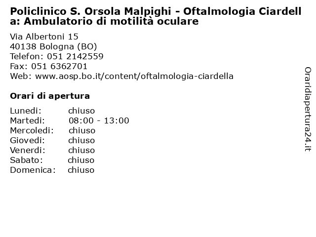 Tag di ricerca per Policlinico S. Orsola Malpighi - Oftalmologia Ciardella: Ambulatorio di motilità oculare:di, s., sanità, assistenza, ambulatorio, malpighi, orsola, policlinico, oftalmologia, ciardella, oculare, cure mediche, servizi ai cittadini, motilità |