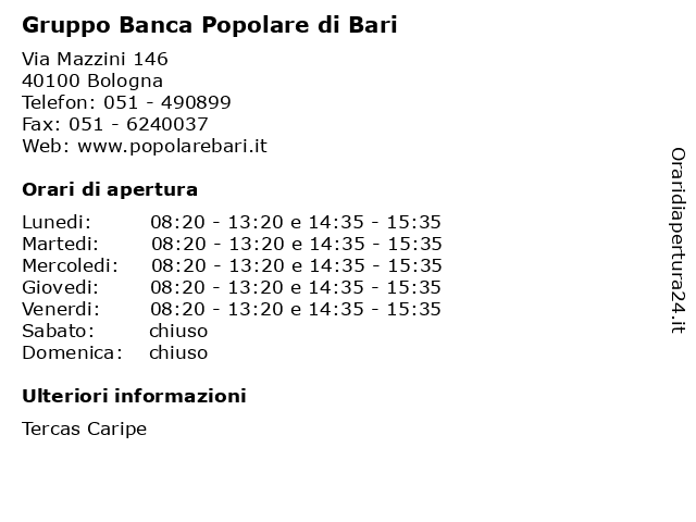 1 Banco BPM Banca Popolare di Milano (distanza: 0,04 km) Via Mazzini 91/H, 40139 Bologna banca, banco, bank, bpm, di, milano, negozi, popolare, prodotti 2 Banca Popolare di Milano (Bancomat) (distanza: 0,05 km) Via G. Mazzini 91-H, 40137 Bologna (bancomat), atm, banca, bancomat, contanti, conto corrente, di, milano, popolare, prelievi, ricariche telefoniche, risparmi, versamenti 3 Banca Popolare di Milano (Bancomat) (distanza: 2,99 km) Via Toscana 26, 40141 Bologna (bancomat), atm, banca, bancomat, contanti, conto corrente, di, milano, popolare, prelievi, ricariche telefoniche, risparmi, versamenti 4 Banca Popolare di Milano (Bancomat) (distanza: 3,03 km) Via G. Amendola 12 A, 40121 Bologna (bancomat), atm, banca, bancomat, contanti, conto corrente, di, milano, popolare, prelievi, ricariche telefoniche, risparmi, versamenti 5 Banca Popolare di Vicenza (distanza: 3,09 km) Via Emilia Est 214, 40068 San Lazzaro Di Savena assicurazione per la casa, assicurazione per la persona, banca, bancomat, carige, carta prepagata, cassa, conti correnti, di, finanziamenti, investimenti, mutui, polizza auto, popolare, prestiti personali, risparmio, vicenza 6 Banca Popolare di Milano (Bancomat) (distanza: 3,09 km) Via Ferrarese 3, 40128 Bologna (bancomat), atm, banca, bancomat, contanti, conto corrente, di, milano, popolare, prelievi, ricariche telefoniche, risparmi, versamenti |