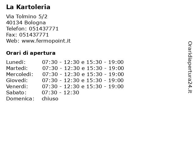 | Lunedi | 07:30-12:30 e 15:30-19:00 |