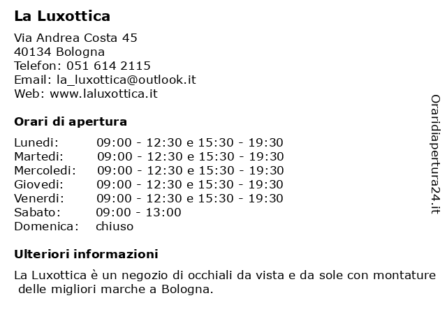 | Lunedi | 09:00-12:30 e 15:30-19:30 |