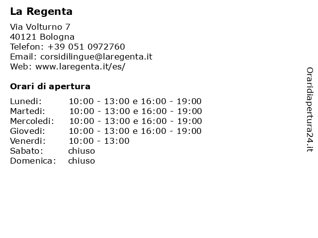 | Lunedi | 10:00-13:00 e 16:00-19:00 |