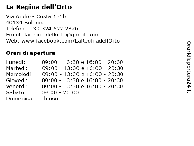 | Lunedi | 09:00-13:30 e 16:00-20:30 |