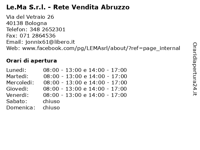 1 Le.Ma S.r.l. (distanza: 0,00 km) Via del Vetraio 26, 40138 Bologna fg, fili, gomma, guaine, guarnizioni, le.ma, lema, manufacturer, metallo, paraoli, ricambi, ricambio, s.r.l. 2 Le.Ma S.r.l. - Ufficio Export (distanza: 0,00 km) Via del Vetraio 26, 40138 Bologna export, fg, fili, gomma, guaine, guarnizioni, le.ma, lema, manufacturer, metallo, paraoli, ricambi, ricambio, s.r.l., ufficio 3 Le.Ma S.r.l. - Direzione Generale (distanza: 0,00 km) Via del Vetraio 26, 40138 Bologna direzione, fg, fili, generale, gomma, guaine, guarnizioni, le.ma, lema, manufacturer, metallo, paraoli, ricambi, ricambio, s.r.l. 4 Le.Ma S.r.l. - Ufficio Commerciale (distanza: 0,00 km) Via del Vetraio 26, 40138 Bologna commerciale, fg, fili, gomma, guaine, guarnizioni, le.ma, lema, manufacturer, metallo, paraoli, ricambi, ricambio, s.r.l., ufficio 5 MA.BO (distanza: 0,52 km) Via Isonzo 9/2, 40055 Villanova di Castenaso assistenza tecnica, ma.bo, ricambi, riparazioni 6 Re.Ma. Di Resta Tommaso e Marano' Eligio Snc (distanza: 3,14 km) Piazza Bagneres De Bigorre 1/e, 40057 Granarolo Dell'Emilia catering, eligio, marano, re, resta, ristoranti, tommaso |