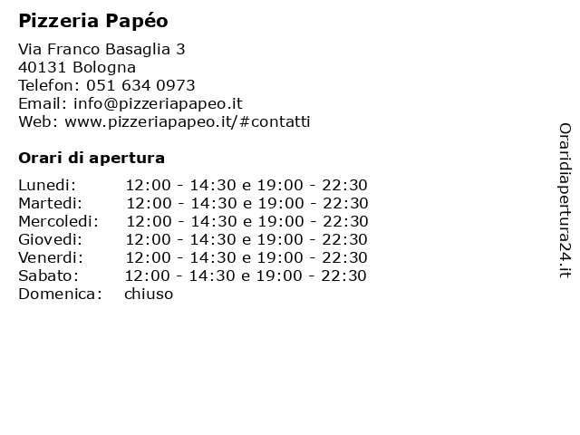 | Sabato | 12:00-14:30 e 19:00-22:30 |