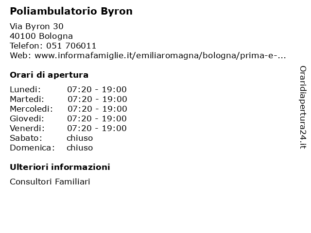 1 Consultorio familiare (distanza: 0,00 km) Via Byron 30, 40126 Bologna assistenza gravidanza, consultori, consultorio, familiare, familiari, spazio giovani 2 Consultorio familiare (distanza: 4,45 km) Via Tiarini 10/12, 40126 Bologna assistenza gravidanza, consultori, consultorio, familiare, familiari, spazio giovani 3 Consultorio familiare (distanza: 4,92 km) Via Beroaldo 4/2, 40126 Bologna assistenza gravidanza, consultori, consultorio, familiare, familiari, spazio giovani 4 Consultorio familiare (distanza: 5,82 km) Via Zanolini 2, 40126 Bologna assistenza gravidanza, consultori, consultorio, familiare, familiari, spazio giovani 5 Consultorio familiare (distanza: 6,31 km) Via S. Isaia 94/a, 40126 Bologna assistenza gravidanza, consultori, consultorio, familiare, familiari, spazio giovani 6 Consultorio familiare (distanza: 7,28 km) Via Carpaccio 2, 40126 Bologna assistenza gravidanza, consultori, consultorio, familiare, familiari, spazio giovani |