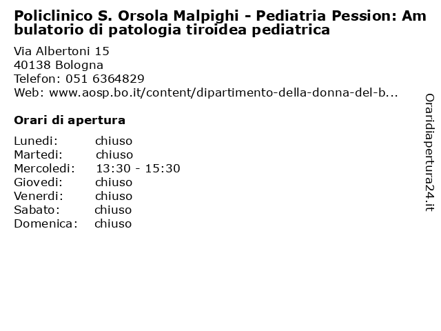 Tag di ricerca per Policlinico S. Orsola Malpighi - Pediatria Pession: Ambulatorio di patologia tiroidea pediatrica:di, s., sanità, assistenza, ambulatorio, malpighi, orsola, patologia, pediatria, pediatrica, policlinico, cure mediche, tiroidea, servizi ai cittadini, pession |