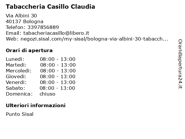 | Sabato | 08:00-13:00 |