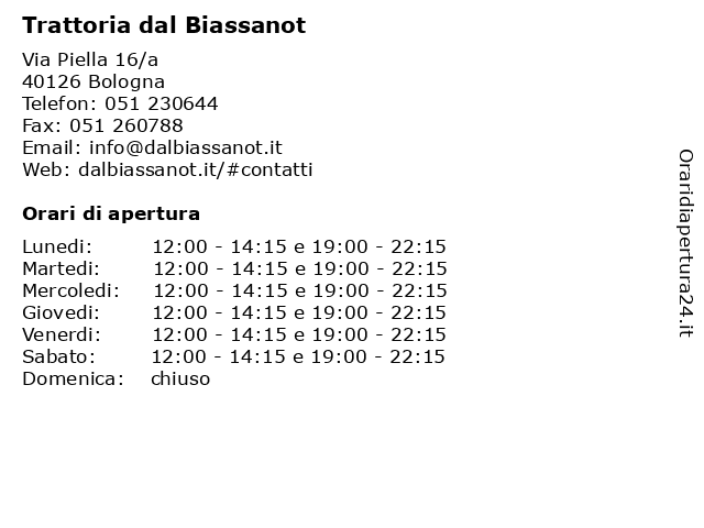 | Lunedi | 12:00-14:15 e 19:00-22:15 |