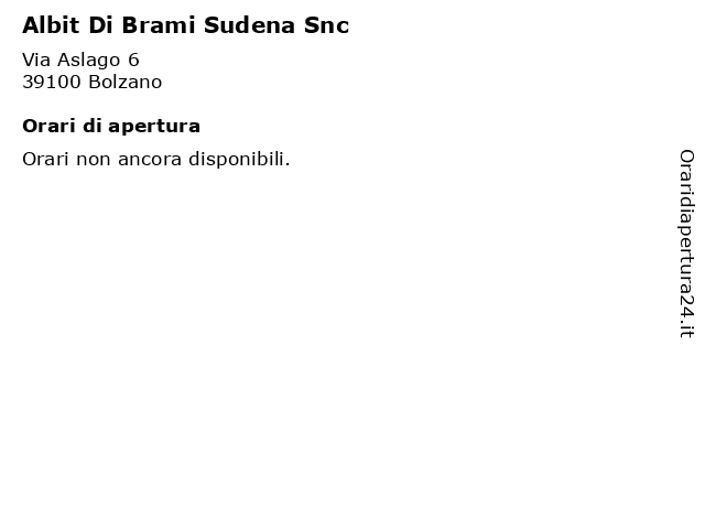 1 Albit Di Brami Sudena Snc (distanza: 6,61 km) Via Guglielmo Marconi 23/a, 39055 Laives albit, bar, birrerie, brami, paninoteche, sudena 2 Bobram Sas Di Brami Erind & c. (distanza: 0,00 km) Via Aslago 6, 39100 Bolzano abbigl, bobram, brami, comm, dett, erind, genere 3 Ali Market (distanza: 1,89 km) Via Sassari 41, 39100 Bolzano abbigl, ali, bobram, brami, comm, dett, erind, genere, market |