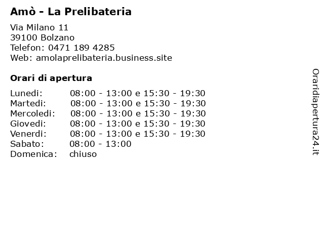 Lunedi | 08:00-13:00 e 15:30-19:30 |