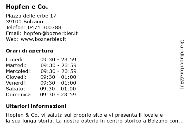 1 Forsterbräu (distanza: 0,03 km) Via Goethe 6, 39100 Bolzano bar, birreria, forsterbräu, lounge bar, paninoteca, pub, ristorante 2 Masten Color (distanza: 0,04 km) Vicolo Delle Erbe 4, 39100 Bolzano barbara, co, color, comm, dett, di, ferramenta, masten, pircher, sas 3 Paulaner Stuben Ristorante Pizzeria Birreria (distanza: 0,09 km) Via Argentieri 16, 39100 Bolzano bar, birreria, paulaner, pizzeria, pub, ristorante, stuben, tavola calda 4 Paluaner Stuben Ristorante Pizzeria Birreria (distanza: 0,09 km) Via Argentieri 16, 39100 Bolzano (BZ) birreria, paluaner, paulaner, pizzeria, pub, ristorante, stuben 5 Josef Pörnbacher & Co (distanza: 0,10 km) Via Dei Portici 51, 39100 Bolzano accessori, co, josef, mercato, negozio, prodotto, pörnbacher 6 Winndegger Franz & Co (distanza: 0,15 km) Via della Mostra 3A, 39100 Bolzano co, franz, macelleria, ohg, prodotti, vendita, winndegger |