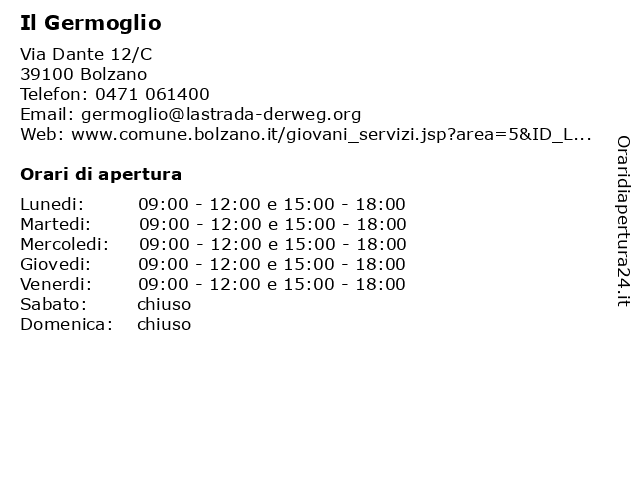 | Lunedi | 09:00-12:00 e 15:00-18:00 |