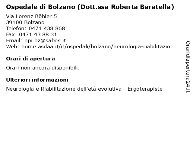 | Chiama Ospedale di Bolzano (Dott.ssa Roberta Baratella) | |