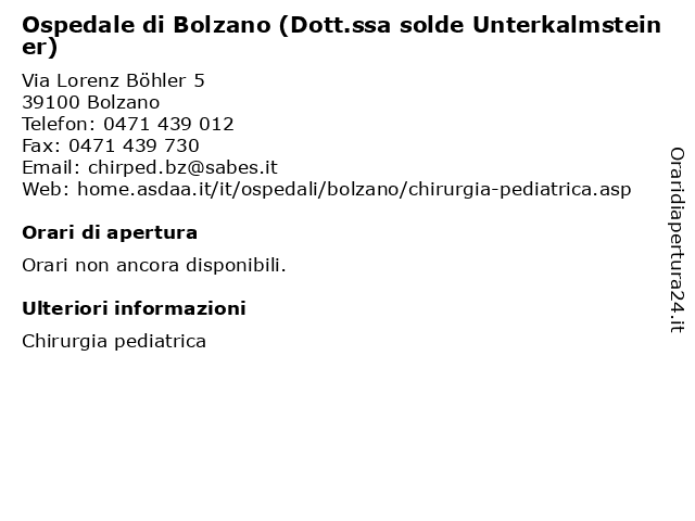 | Chiama Ospedale di Bolzano (Dott.ssa solde Unterkalmsteiner) | |