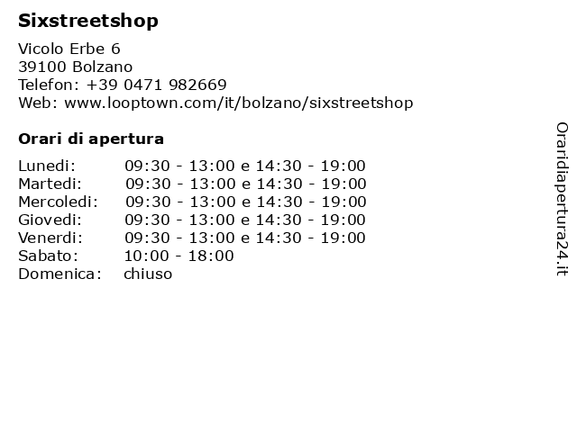 Lunedi | 09:30-13:00 e 14:30-19:00 |