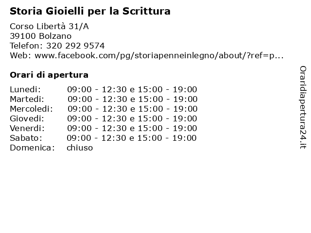 | Sabato | 09:00-12:30 e 15:00-19:00 |
