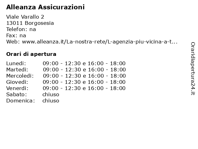 | Lunedi | 09:00-12:30 e 16:00-18:00 |