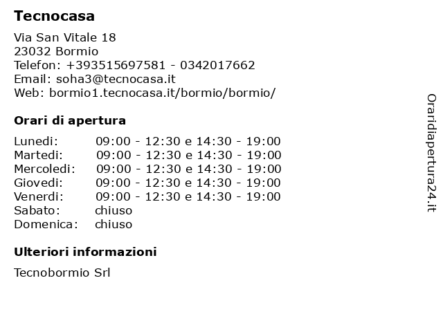 Martedi | 09:00-12:30 e 14:30-19:00 |