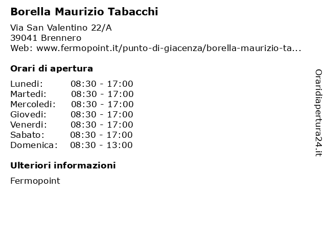 1 Borella Luca (distanza: 0,00 km)Via San Valentino 22, 39041 Brennero borella, luca, tabaccai