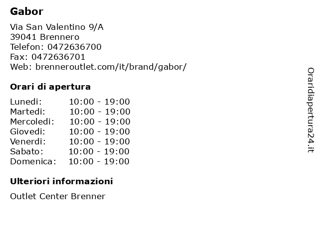 | Sabato | 10:00-19:00 |
