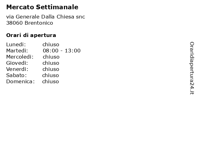 1 Mercato Settimanale (distanza: 4,43 km) Piazza Matteotti snc, 38055 Mori (Tn) accessori, allestire, calzature, comunale, di paese, mercato, mercato cittadino, oggettistica, piazza, rionale, rivenditori, settimanale, vestiti 2 Mercato Settimanale (distanza: 7,44 km) Via Angelini snc, 38061 Ala accessori, allestire, calzature, comunale, di paese, mercato, mercato cittadino, oggettistica, piazza, rionale, rivenditori, settimanale, vestiti 3 Mercato Settimanale (distanza: 8,14 km) Parco Cologna Pavese snc, 38069 Nago-Torbole accessori, allestire, calzature, comunale, di paese, mercato, mercato cittadino, oggettistica, piazza, rionale, rivenditori, settimanale, vestiti 4 Mercato Settimanale (distanza: 9,41 km) Piazza Vittorio Emanuele III° snc, 38063 Avio accessori, allestire, calzature, comunale, di paese, mercato, mercato cittadino, oggettistica, piazza, rionale, rivenditori, settimanale, vestiti 5 Mercato Settimanale (distanza: 10,80 km) Via Roma snc, 38068 Rovereto accessori, allestire, calzature, comunale, di paese, mercato, mercato cittadino, oggettistica, piazza, rionale, rivenditori, settimanale, vestiti 6 Mercato Settimanale (distanza: 12,39 km) Piazza III Novembre 3, 38062 Arco accessori, allestire, calzature, comunale, di paese, mercato, mercato cittadino, oggettistica, piazza, rionale, rivenditori, settimanale, vestiti |