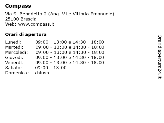 | Lunedi | 09:00-13:00 e 14:30-18:00 |
