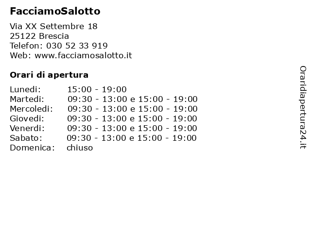 | Sabato | 09:30-13:00 e 15:00-19:00 |