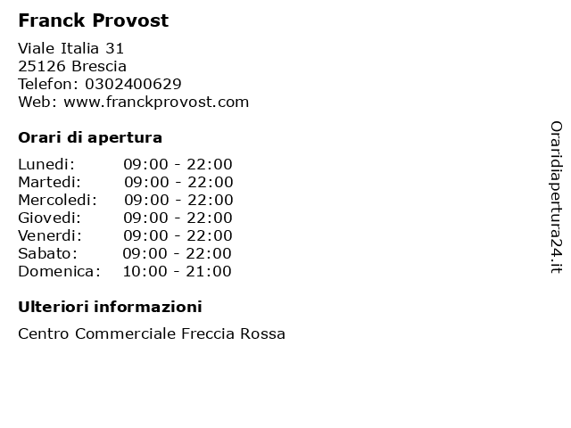 1 Franck Provost Paris (distanza: 31,96 km) Via Brescia 4, 25019 Sirmione acconciature, donna, franck, paris, parrucchiere, provost, salone 2 Franck Provost (distanza: 52,19 km) Via Trentino 1, 37060 Lugagnano (VR) belleza, dream, franck, hair, parrucchieri, provost, salud, spa 3 Franck Provost (distanza: 53,17 km) Strada Statale 11 s.n.c., 37012 Bussolengo (VR) accessori, franck, franck provost, hair style, parrucchiere, provost 4 Eboigbodin Franck Owen (distanza: 57,64 km) Via Del Ponte 20, 37124 Verona articoli, comm, dett, eboigbodin, franck, owen, vari 5 Jean Louis David Freccia Rossa (distanza: 0,04 km) Viale Italia 31, 25126 Brescia capelli, colore, david, freccia, jean, louis, luis, parrucchiere, piega, prodotti per capelli, rossa, taglio 6 Estro Parrucchieri (distanza: 0,46 km) Fausto Bocchi 26/c, 25124 Brescia cura della bellezza, estro, parrucchiere, parrucchieri |