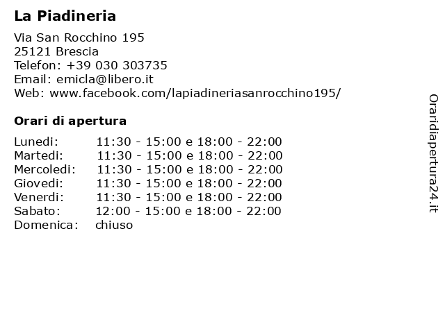 | Lunedi | 11:30-15:00 e 18:00-22:00 |