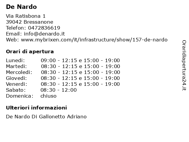 | Lunedi | 09:00-12:15 e 15:00-19:00 |