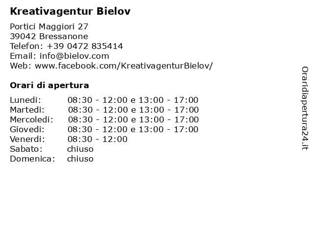| Lunedi | 08:30-12:00 e 13:00-17:00 |