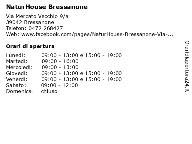| Lunedi | 09:00-13:00 e 15:00-19:00 |