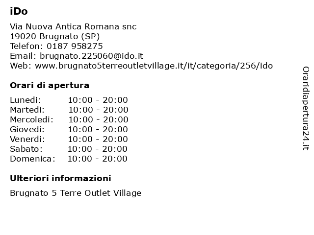 | Lunedi | 10:00-20:00 |