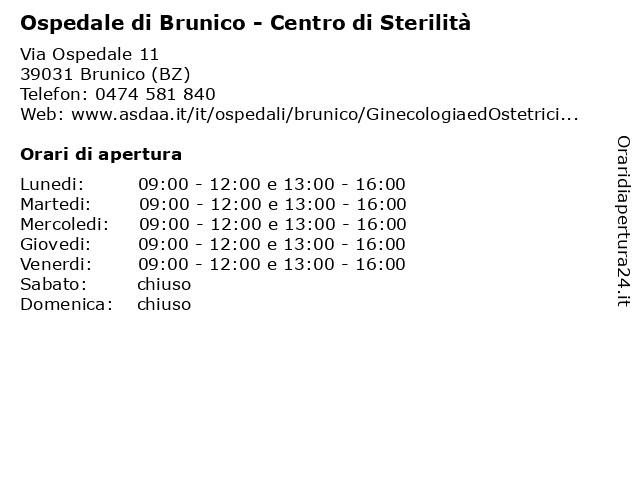 | Lunedi | 09:00-12:00 e 13:00-16:00 |