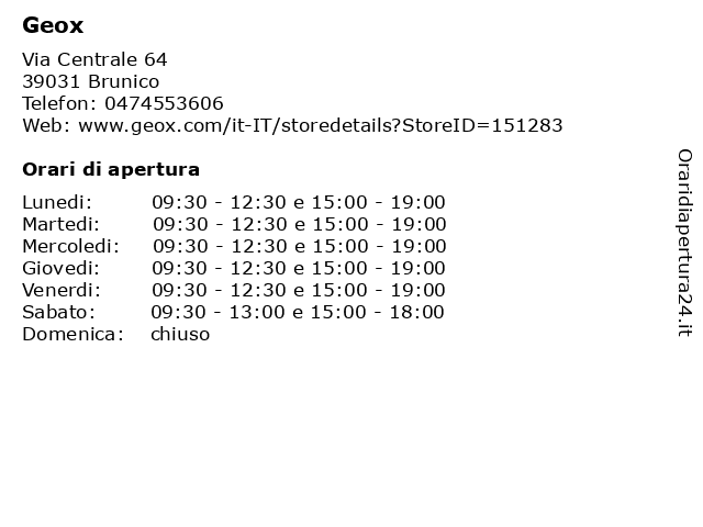 | Sabato | 09:30-13:00 e 15:00-18:00 |
