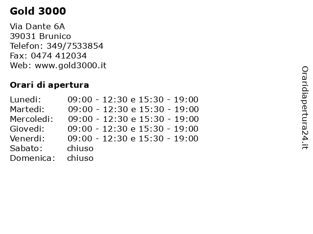 | Lunedi | 09:00-12:30 e 15:30-19:00 |