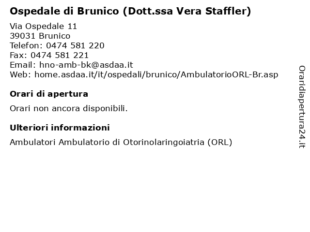 | Chiama Ospedale di Brunico (Dott.ssa Vera Staffler) | |