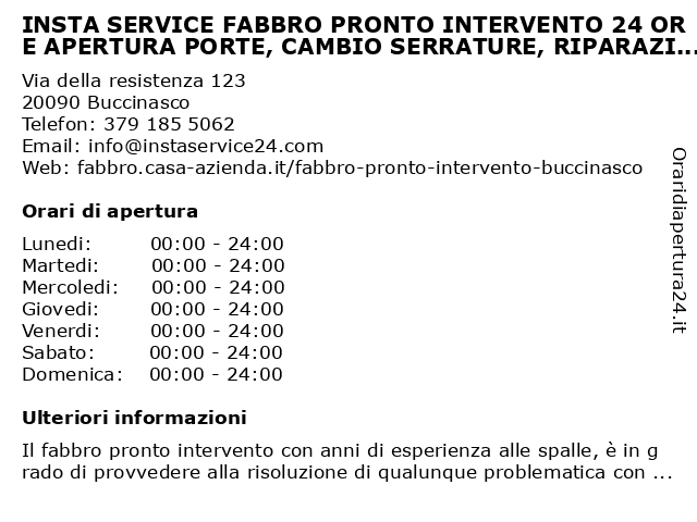 1 INSTA SERVICE FABBRO PRONTO INTERVENTO 24 ORE APERTURA PORTE, CAMBIO SERRATURE, RIPARAZIONE SERRANDE E TAPPARELLE, APERTURA CASSEFORTI (distanza: 1,11 km) Via giacomo leopardi 23, 20090 Buccinasco 24, apertura, cambio, casseforti, insta, intervento, ore, porte, pronto, riparazione, serrande, serrature, service fabbro, tapparelle 2 INSTA SERVICE FABBRO PRONTO INTERVENTO 24 ORE APERTURA PORTE, CAMBIO SERRATURE, RIPARAZIONE SERRANDE E TAPPARELLE, APERTURA CASSEFORTI (distanza: 1,70 km) Piazza risorgimento 18, 20090 Assago 24, apertura, cambio, casseforti, insta, intervento, ore, porte, pronto, riparazione, serrande, serrature, service fabbro, tapparelle 3 INSTA SERVICE FABBRO PRONTO INTERVENTO 24 ORE APERTURA PORTE, CAMBIO SERRATURE, RIPARAZIONE SERRANDE E TAPPARELLE, APERTURA CASSEFORTI (distanza: 3,89 km) Piazza san giovanni battista 1, 20090 Cesano Boscone 24, apertura, cambio, casseforti, insta, intervento, ore, porte, pronto, riparazione, serrande, serrature, service fabbro, tapparelle 4 INSTA SERVICE FABBRO PRONTO INTERVENTO 24 ORE APERTURA PORTE, CAMBIO SERRATURE, RIPARAZIONE SERRANDE E TAPPARELLE, APERTURA CASSEFORTI (distanza: 11,56 km) Via francesco gallina 55, 20010 Bareggio 24, apertura, cambio, casseforti, insta, intervento, ore, porte, pronto, riparazione, serrande, serrature, service fabbro, tapparelle 5 INSTA SERVICE FABBRO PRONTO INTERVENTO 24 ORE APERTURA PORTE, CAMBIO SERRATURE, RIPARAZIONE SERRANDE E TAPPARELLE, APERTURA CASSEFORTI (distanza: 14,20 km) Piazza san francesco , 20021 Bollate 24, apertura, cambio, casseforti, insta, intervento, ore, porte, pronto, riparazione, serrande, serrature, service fabbro, tapparelle 6 INSTA SERVICE FABBRO PRONTO INTERVENTO 24 ORE APERTURA PORTE, CAMBIO SERRATURE, RIPARAZIONE SERRANDE E TAPPARELLE, APERTURA CASSEFORTI (distanza: 14,92 km) Via vittorio veneto 20, 20091 Bresso 24, apertura, cambio, casseforti, insta, intervento, ore, porte, pronto, riparazione, serrande, serrature, service fabbro, tapparelle |