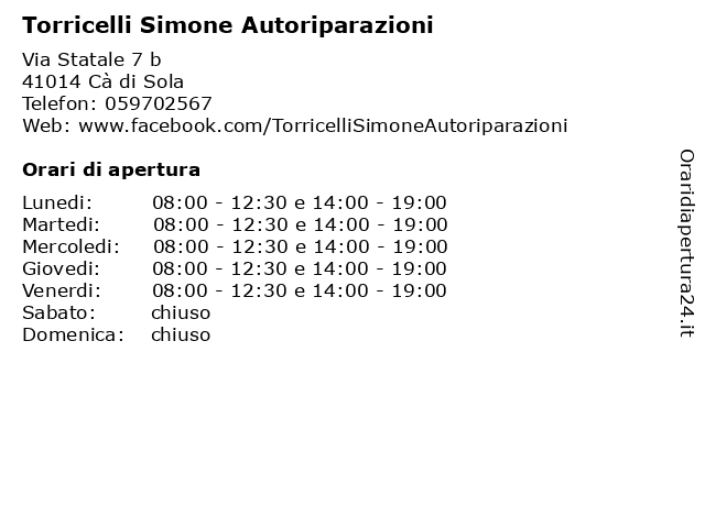 Lunedi | 08:00-12:30 e 14:00-19:00 |