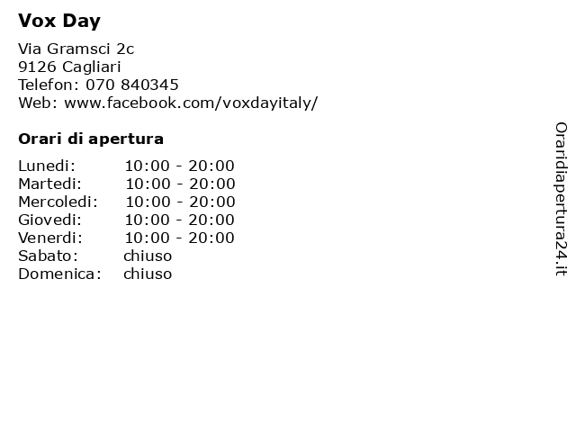 | Lunedi | 10:00-20:00 |
