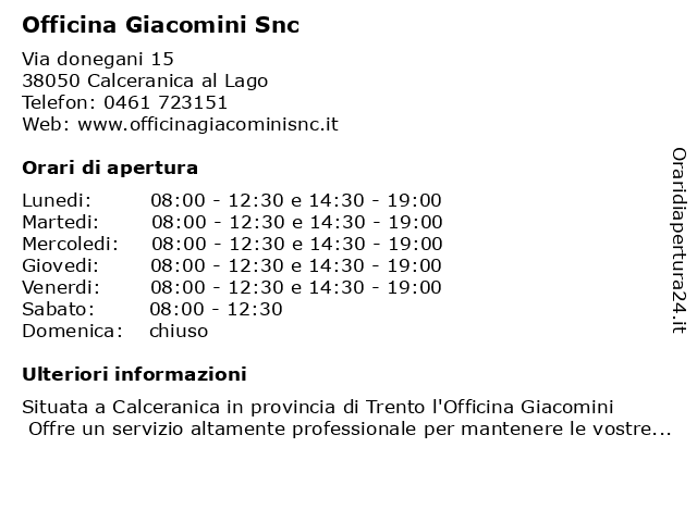 Lunedi | 08:00-12:30 e 14:30-19:00 |