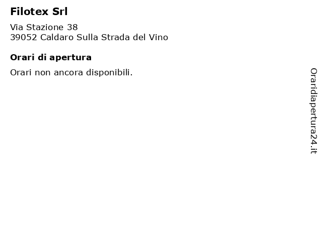 2 4 Filotex Srl (distanza: 42,03 km) Via Alessandro Volta 36, 38123 Trento abbigl, comm, dett, filotex, genere 5 Filotex Srl (distanza: 45,76 km) Via Portici Maggiori 11, 39042 Bressanone abbigl, comm, dett, filotex, genere 6 Filotex Srl (distanza: 55,30 km) Via Citta Nuova 47, 39049 Vipiteno abbigl, comm, dett, filotex, genere |