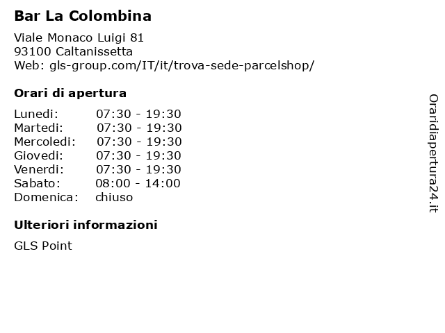 1 Tabaccheria N°9 (distanza: 1,06 km) Via Don Giovanni Minzoni 231D, 93100 Caltanissetta gls, negozio, n°9, shop, spedizione, tabaccheria 2 Postal Service (distanza: 3,48 km) Via Babbaurra 10, 93017 San Cataldo gls, negozio, postal, service, shop, spedizione 3 XCell (distanza: 3,54 km) Piazza Degli Eroi 13, 93017 San Cataldo gls, negozio, shop, spedizione, xcell 5 MiscelaArt Store (distanza: 3,60 km) Viale Italia 133, 93017 San Cataldo gls, miscelaart, negozio, shop, spedizione, store 6 Mangiavillano Store (distanza: 3,71 km) Corso Sicilia 30, 93017 San Cataldo gls, mangiavillano, negozio, shop, spedizione, store |