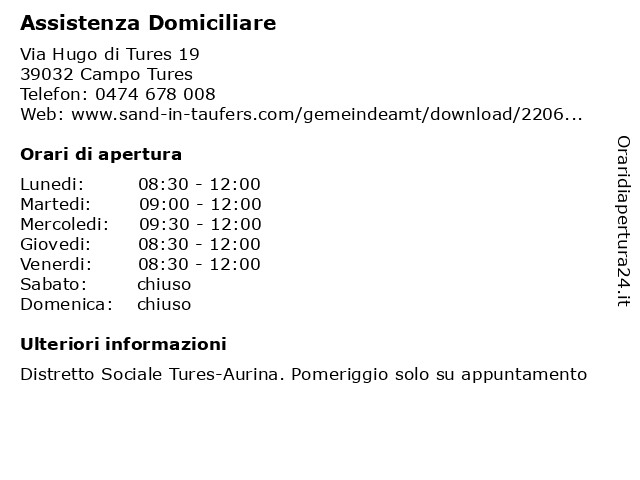 1 Distretto Sociale Wipptal (Assistenza domiciliare) (distanza: 40,07 km) Via San Giacomo 8, 39049 Vipiteno (assistenza, consorzio sociale, distretto, domiciliare), servizi sociali, sociale, wipptal 2 Distretto sociale Val Gardena - Assistenza Domiciliare (distanza: 44,09 km) Via J.B.Purger 16, 39046 Ortisei ambulatorio, assistenza, cure mediche, distretto, domiciliare, gardena, sanità, servizi ai cittadini, sociale, val 3 Caritas Diocesi Bolzano-Bressanone (Assistenza Domiciliare) (distanza: 55,12 km) Via Passirio 3, 39015 San Leonardo in Passiria (assistenza, accompagnamento ai servizi, aiuto ai bisognosi, aiuto materiale, alimenti, ascolto, bolzano, bressanone, caritas, diocesi, domiciliare), sussidi, vestiario, volontariato 4 Servizio Sanitario - Punto unico di accesso PUA (distanza: 59,10 km) strada di Prè de Gejia 4, 38036 Pozza di Fassa accesso, assistenza domiciliare integrata cure palliative, assistenza protesica, di, fassa, malattie cronico-degenerative, neoplastiche in fase avanzata, pua, punto, punto unico cure primarie, sanitario, servizio, servizio cure palliative, unico |