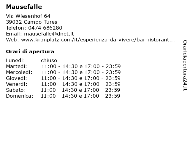 | Martedi | 11:00-14:30 e 17:00-23:59 |